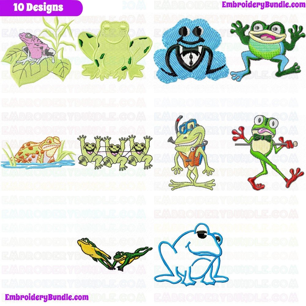 Frogs Embroidery Design Bundle 7