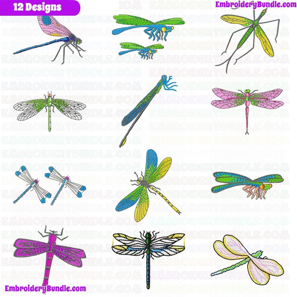 Dragon Flies Embroidery Design Bundle 2