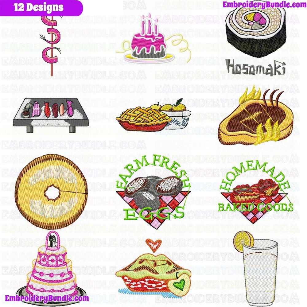 - Product Code: Foods And Sweets Embroidery Design Bundle 7