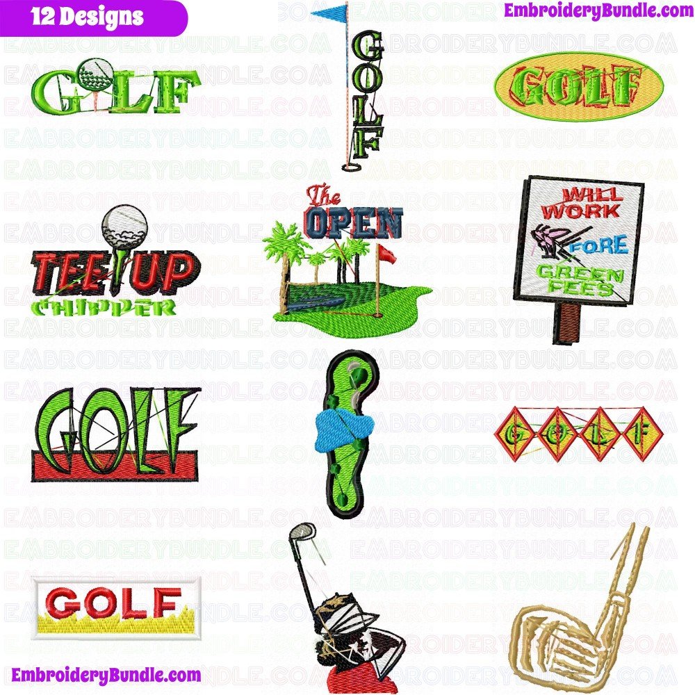 Golf Embroidery Design Bundle 16