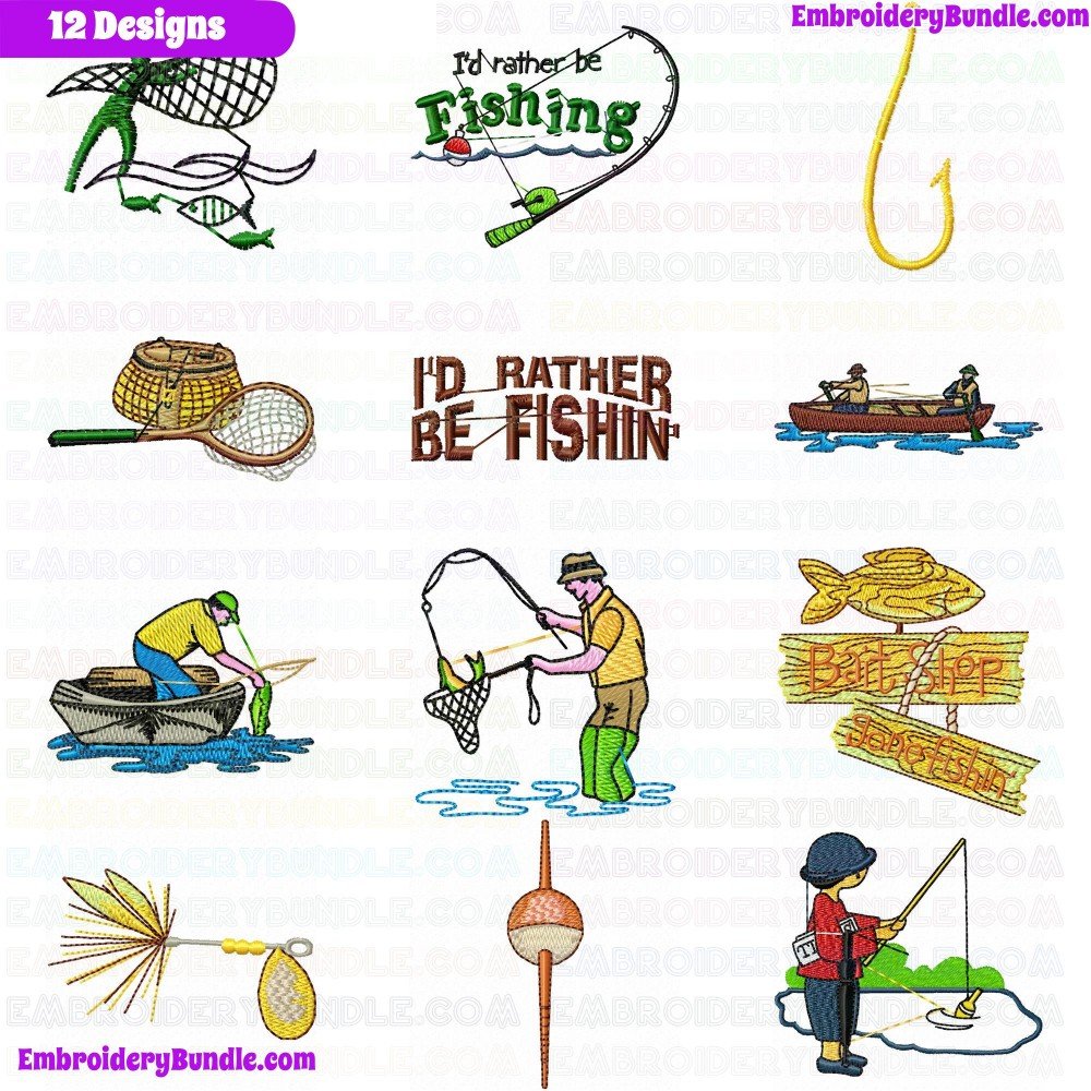 • Fishing Embroidery Design Bundle 1