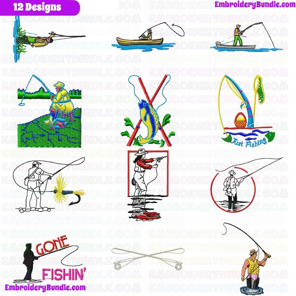 Fishing Embroidery Design Bundle 3