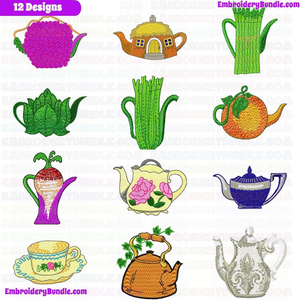 Teapots Embroidery Design Bundle 13